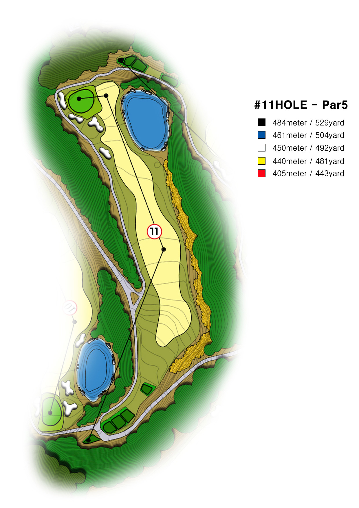 우측으로 든든한 산이 병풍이 되어 호쾌한 샷을 날리고 싶은 미들홀로써 그린 앞 벙커를 조심해야 하며, 페어웨이 우측공략이 유리합니다.